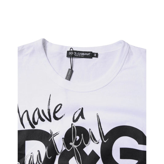 Dolce & Gabbana White Graphic Print Cotton CrewNeck T-shirt