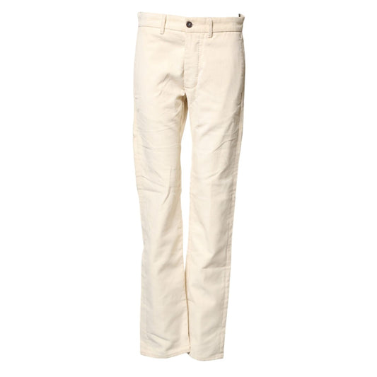 Fortela Off White Cotton Straight Men Corduroy Chino Trouser Pants