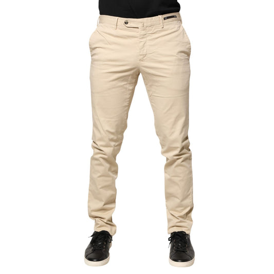 PT01 Beige Mid Waist Men Skinny Fit Chino Trouser Pants