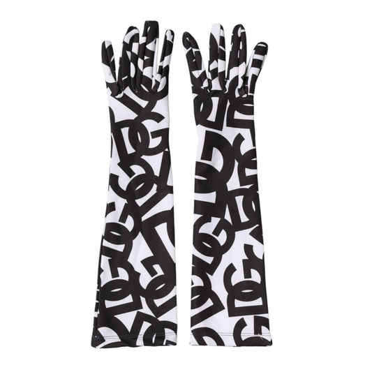 Dolce & Gabbana Black White DG Logo Elbow Length Mitten Gloves