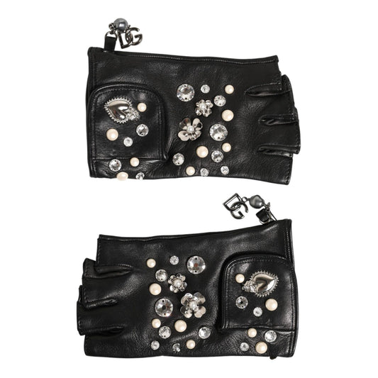 Dolce & Gabbana Black White Nylon Fingerless Wrist Length Gloves