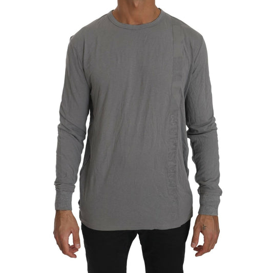 Scervino Street Cotton Gray Round Neck Pullover Top Sweater