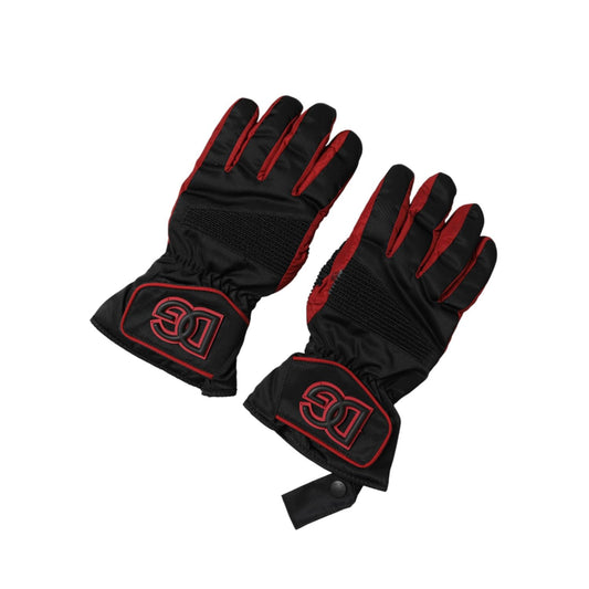 Dolce & Gabbana Black Red Nylon Wrist Length Mitten Gloves