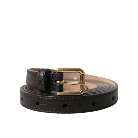 Dolce & Gabbana Black Leather Long Skinny Gold Metal Buckle Belt