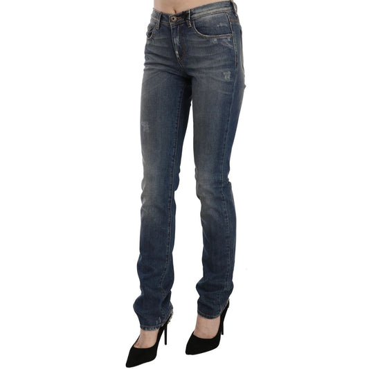 John Galliano Blue Washed Mid Waist Skinny Casual Denim Pants
