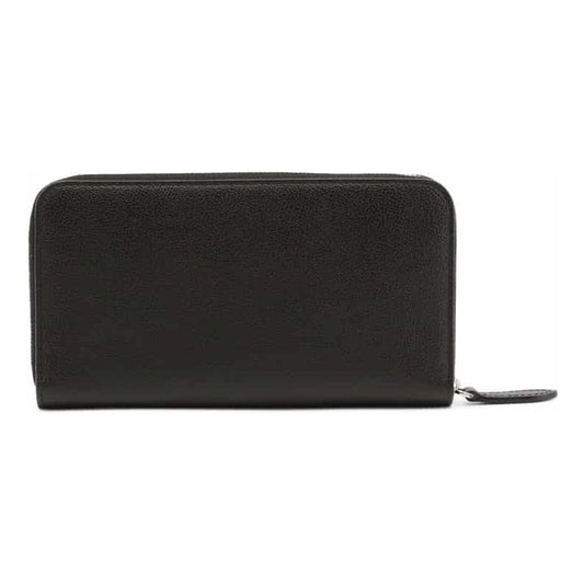 Burberry Luna Black Grained Leather House Check Canvas Coin Pouch Snap Wallet