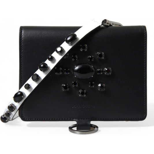 Dolce & Gabbana Black Leather Crystal Embellished Card Holder Wallet