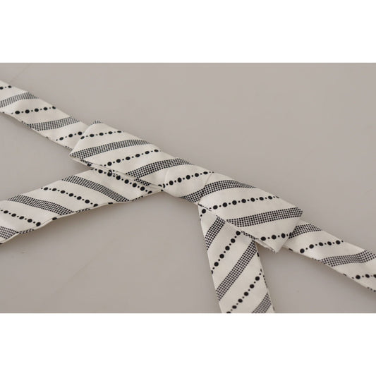 Dolce & Gabbana White Black Polka Dot 100% Silk Neck Papillon Bow Tie