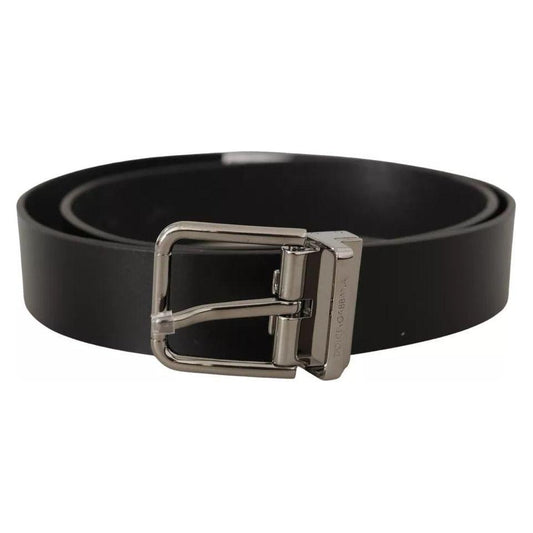 Dolce & Gabbana Black Calf Leather Classic Metal Logo Buckle Belt