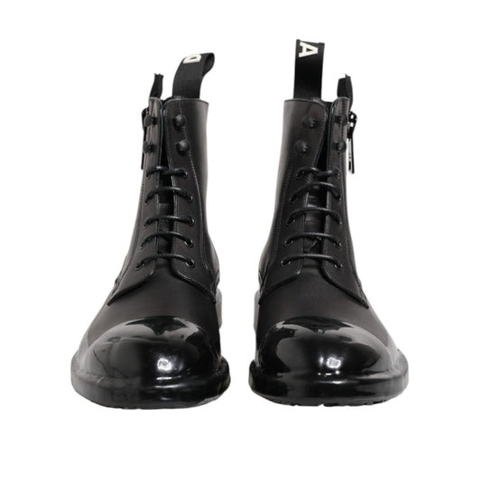 Dolce & Gabbana Black Leather Lace Up Mid Calf Boots Shoes