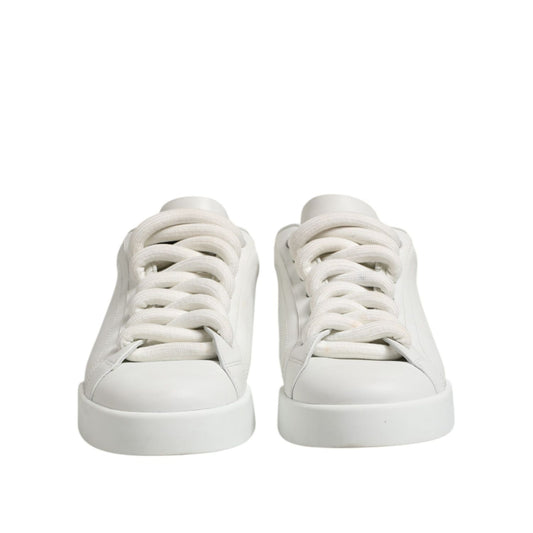 Dolce & Gabbana White Leather Printed Low Top Sneakers Shoes