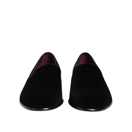 Dolce & Gabbana Black Velvet Slip On Loafers Formal Shoes