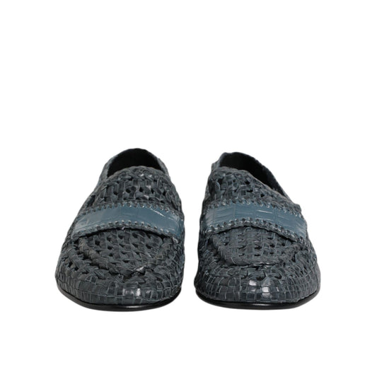 Dolce & Gabbana Blue Woven Raffia Slip On Loafers Shoes