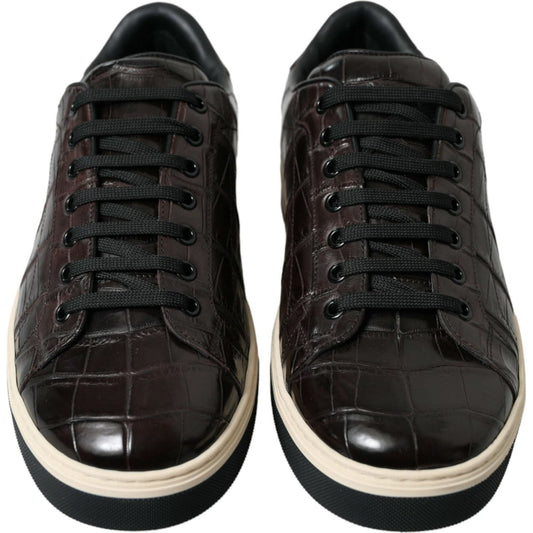 Dolce & Gabbana Brown Croc Exotic Leather Men Casual Sneakers Shoes