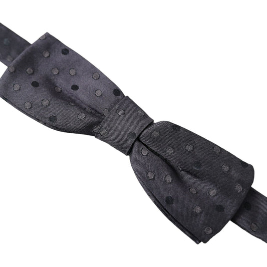Dolce & Gabbana Gray Polka Dot Silk Adjustable Neck Men Papillon Bow Tie