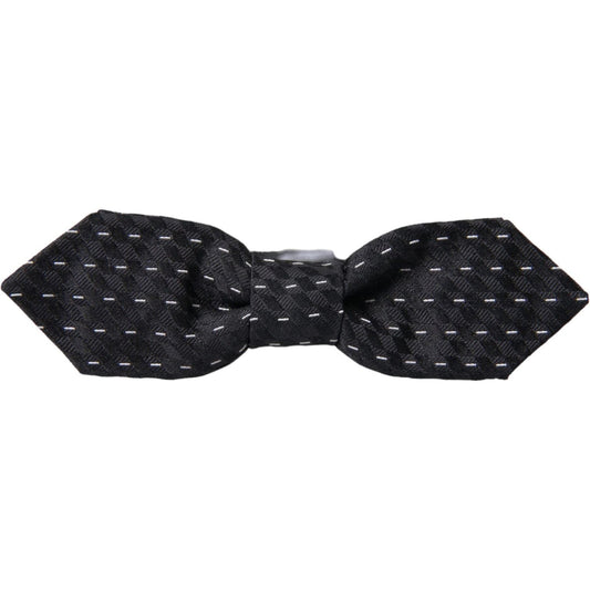 Dolce & Gabbana Black White Stitched Silk Men Neck Bow Tie