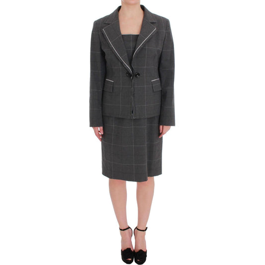 BENCIVENGA Gray Checkered Cotton Blazer Dress Set Suit