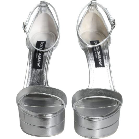 Dolce & Gabbana Silver Leather Platform Keira Sandals Shoes