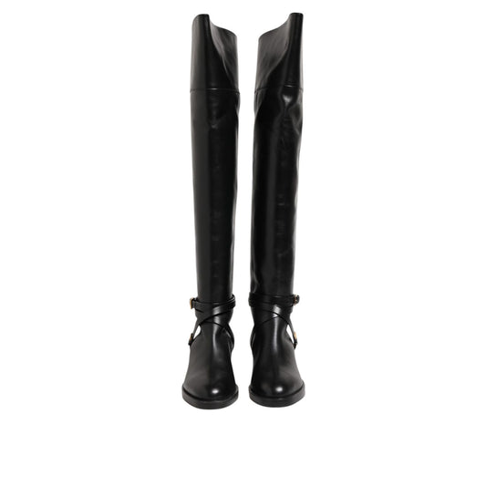 Elisabetta Franchi Black Leather Buckled High Boots Shoes