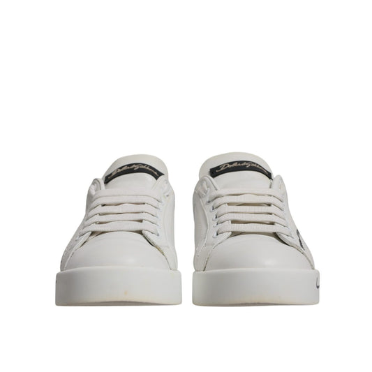 Dolce & Gabbana White Leather Heart Embellished Sneakers Shoes