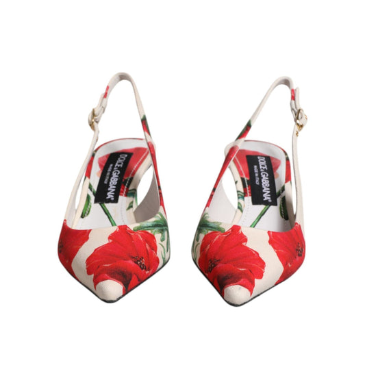 Dolce & Gabbana White Floral Heels Slingback Sandals Shoes