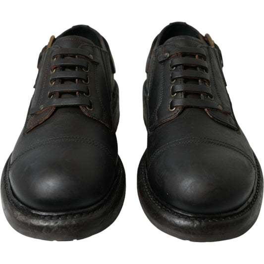 Dolce & Gabbana Brown Leather Lace Up Derby Men Dress Shoes