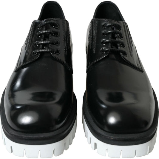 Dolce & Gabbana Black White Leather Lace Up Derby Dress Shoes