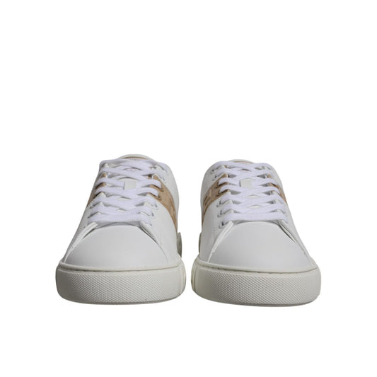Versace White Calf Leather Bos Taurus Low Top Sneakers