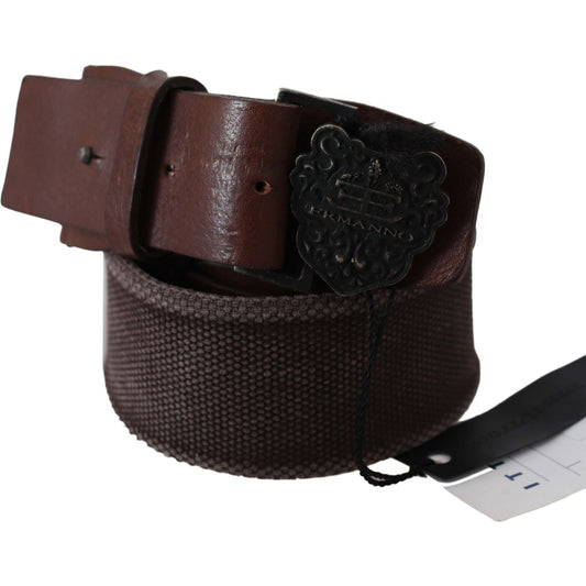 Ermanno Scervino Brown Leather Wide Bronze Buckle Waist Belt