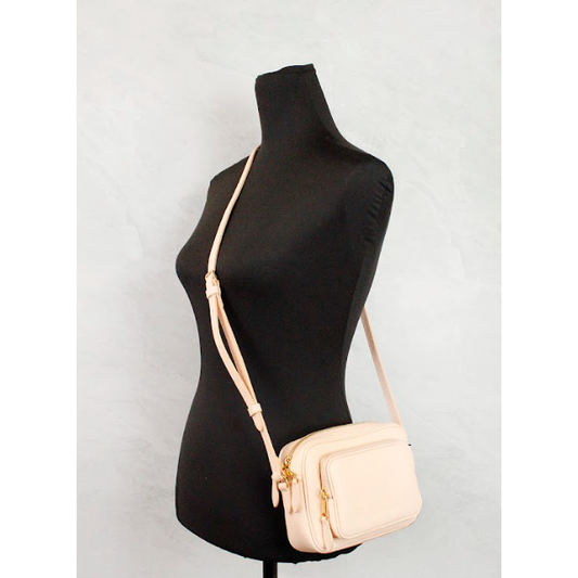 Burberry Small Branded Peach Pink Grainy Leather Camera Crossbody Bag