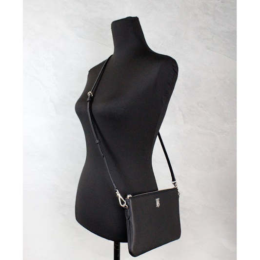 Burberry Peyton Monogram Black Leather Pouch Crossbody Bag Purse