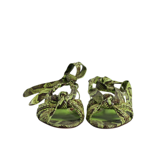 Dolce & Gabbana Green Animal Print Ankle Wrap Sandals Shoes