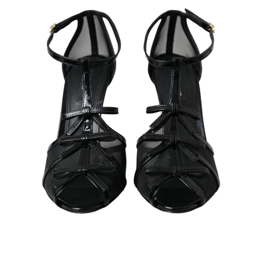 Dolce & Gabbana Black Mesh T-strap Heels Sandals Shoes
