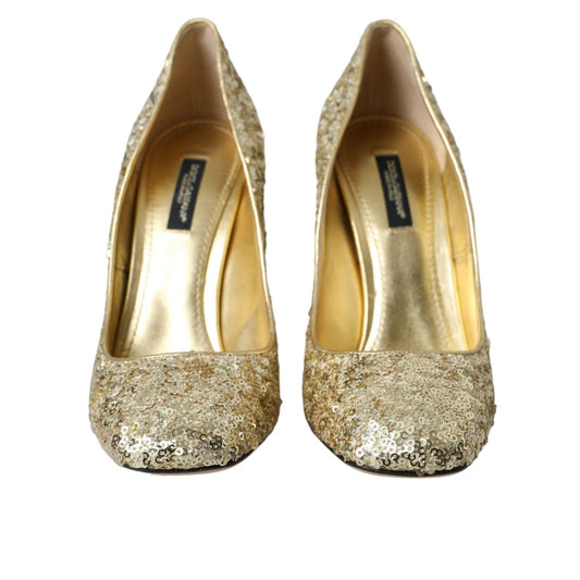Dolce & Gabbana Gold Sequin Crystal Heels Pumps Shoes