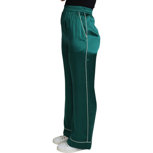Dolce & Gabbana Green High Waist Pajama Trouser Silk Pant
