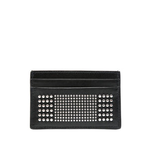 black calf leather silver-tone stud detailing card slots Studded leather card case Size and Fit - Width 4,33 in / 11 cm
