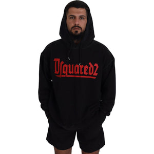 Dsquared² Black Cotton Hooded Printed Men Pullover Sweater