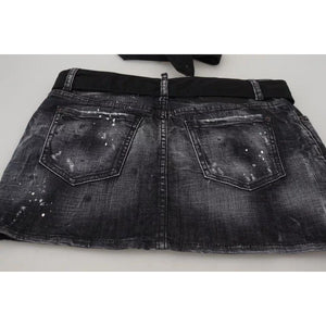 Dsquared² Black Distressed Mid Waist A-line Denim Mini Skirt