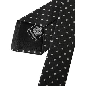 Dolce & Gabbana Black White Polka Dots 100% Silk Necktie Face Mask