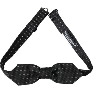 • Dolce & Gabbana Black White Stitched Silk Men Neck Bow Tie
