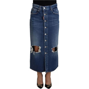 Dsquared² Blue Distressed High Waist Pencil Cut Denim Skirt