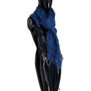 Costume National Blue Linen Shawl Foulard Fringes Scarf