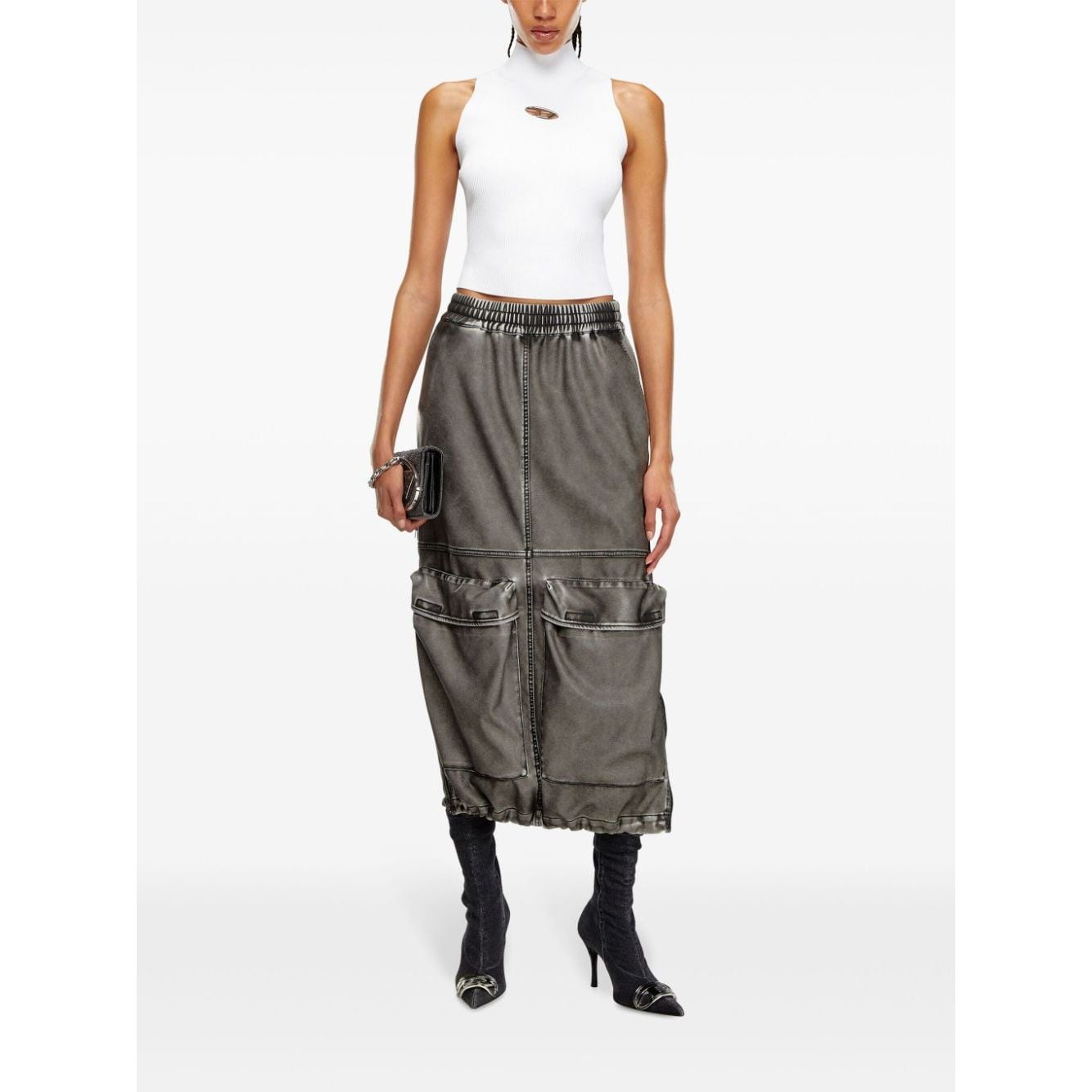 optical white ribbed knit silver-tone logo plaque high neck sleeveless straight hem M-Onervax tank top Size and Fit - This piece fits true to size. We recommend you get your regular size. Model is 1,75m / 5ft 8in wearing size S