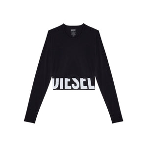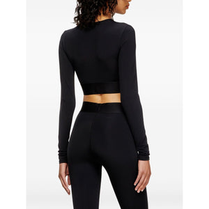 black long sleeves round neck cropped length cut-off logo on the front Logo top