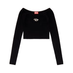 black FSC viscose silver-tone logo plaque cut-out detailing boat neck long sleeves straight hem Conscious: This product contains cellulosic-based material sourced from sustainably managed forests. Learn more about what makes a product Conscious on our Conscious Criteria page Oval-D top Size and Fit - This piece fits true to size. We recommend you get your regular size. Model is 1,75m / 5ft 8in wearing size S