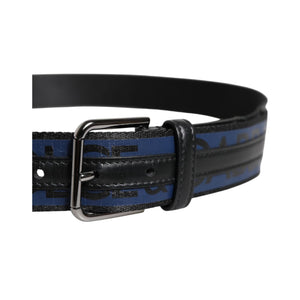 Dolce & Gabbana Black Blue Polyester Printed Metal Buckle Belt