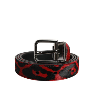 Dolce & Gabbana Black Red Leopard Silver Metal Buckle Belt