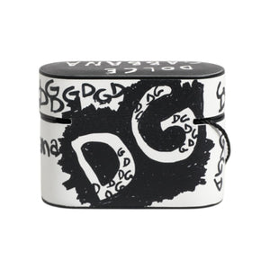 Dolce & Gabbana Black White Leather Scribble Embossed Logo Airpods Case