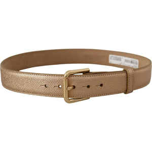 • Dolce & Gabbana Rose Gold Leather Metallic Tone Metal Buckle Belt BEL8443 - 70
