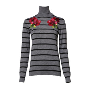 Dolce & Gabbana Gray Floral Embroidery Pullover Sweater